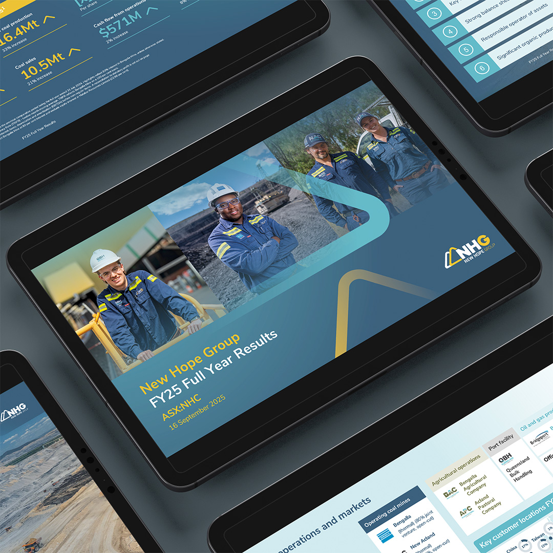 At MDM we create strategic, high-impact presentations for a company’s AGM, results release, investor day, shareholder announcements – and more. Our designs tell compelling stories with clarity and confidence while maintaining company brand standards.
